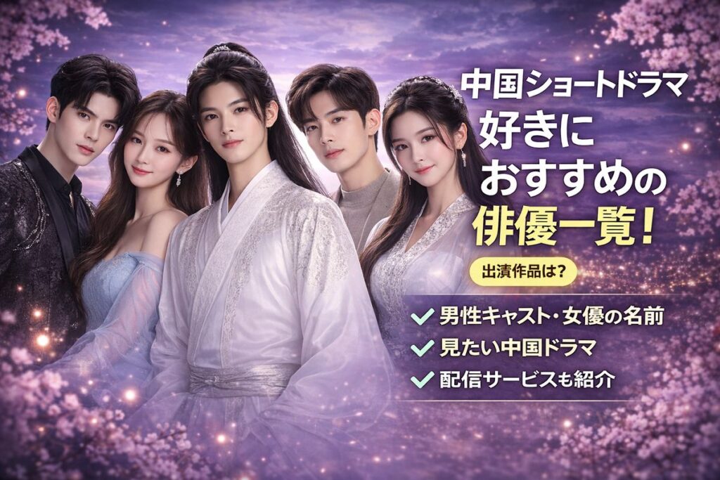 中国ショートドラマで気になる俳優を見つけたら、そのタイプの好みを軸に作品を選ぶと、次にハマる中国ドラマを見つけやすくなります。ここでは、人気俳優と女優、そのおすすめ作品や視聴方法を紹介します。 -