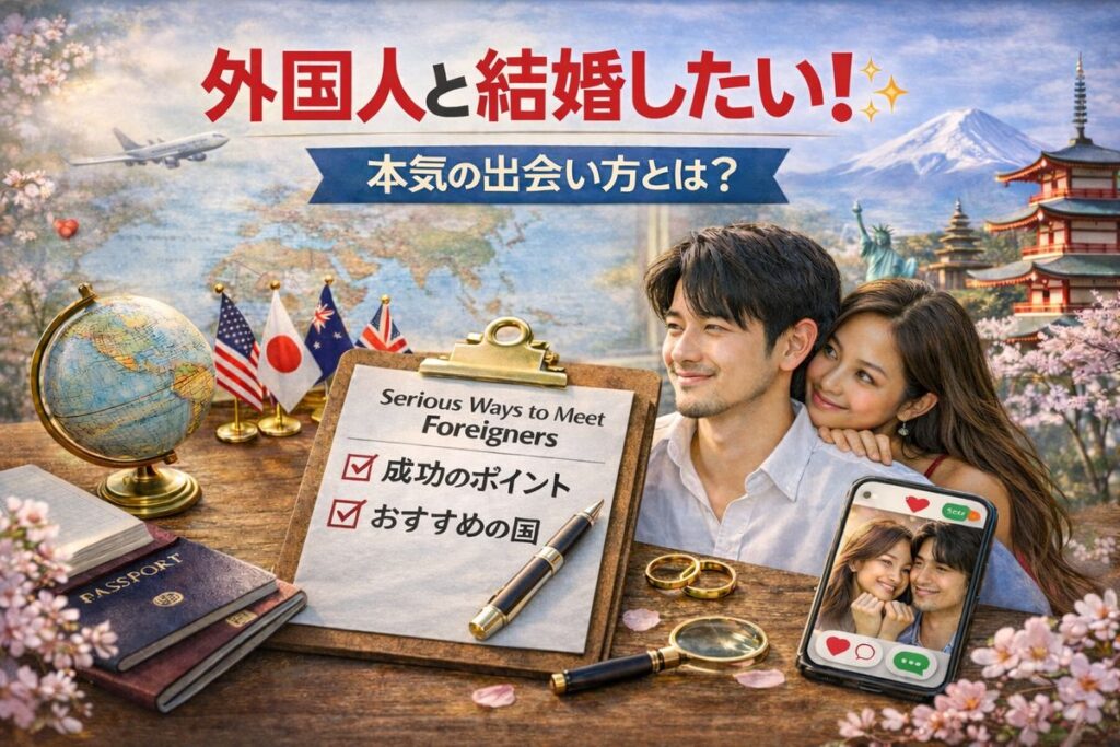 外国人と結婚したくても「出会いがない…」という悩み。実は、日本で外国人と結婚した人の多くは、特別なきっかけから関係が始まっています。ここでは、外国人との結婚につながる本気の出会い方を見ていきます。 -